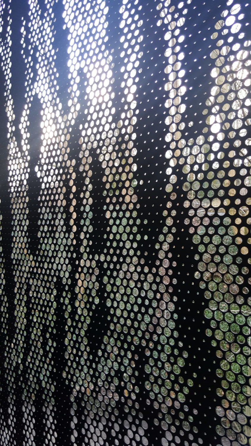Fabrication et installation sur site de tôleries pour bardage en tôles aluminium – tôles perforées suivant un design sur mesure – tôles anodisées teinte bronze – parties de bardage coulissantes pour ouverture des locaux vers terrasse.